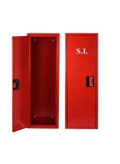 Com dimensões de 90x30x30 cm, este modelo permite o armazenamento de extintores de maiores dimensões, sendo ideal para extintores de 9 kg, 12 kg ou garrafas de CO₂. Dispõe de duas portas com fecho manual e inscrição “S.I.” (Segurança Incêndio), assegurando rápida identificação do equipamento.