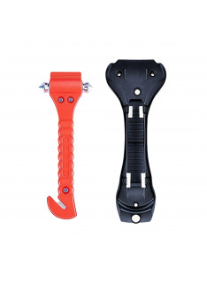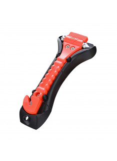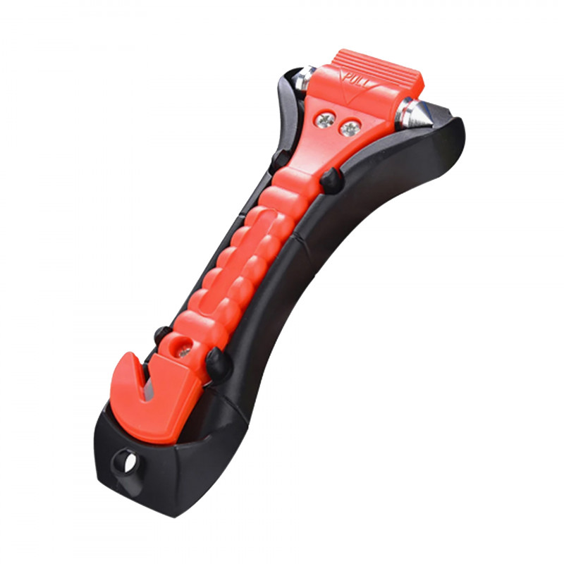 Fabricado com ponta dupla em aço resistente, o martelo concentra a força no ponto de impacto, facilitando a quebra do vidro lateral do carro. O produto também possui um cortador de cinto embutido, protegido para evitar acidentes durante o uso normal.