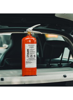 Este modelo inclui suporte metálico com furação para fixação, permitindo a instalação segura em parede ou interior de viaturas. Cumpre todas as exigências legais e é fornecido com certificação válida pela ANEPC (Autoridade Nacional de Emergência e Proteção Civil – registo n.º 51).