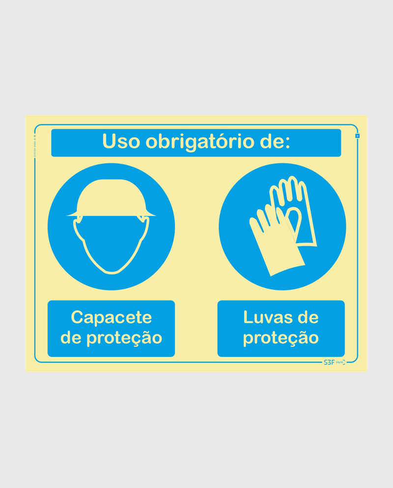 • Sinal PVC Fotoluminescente - Capacete e Luvas Obrigatórios