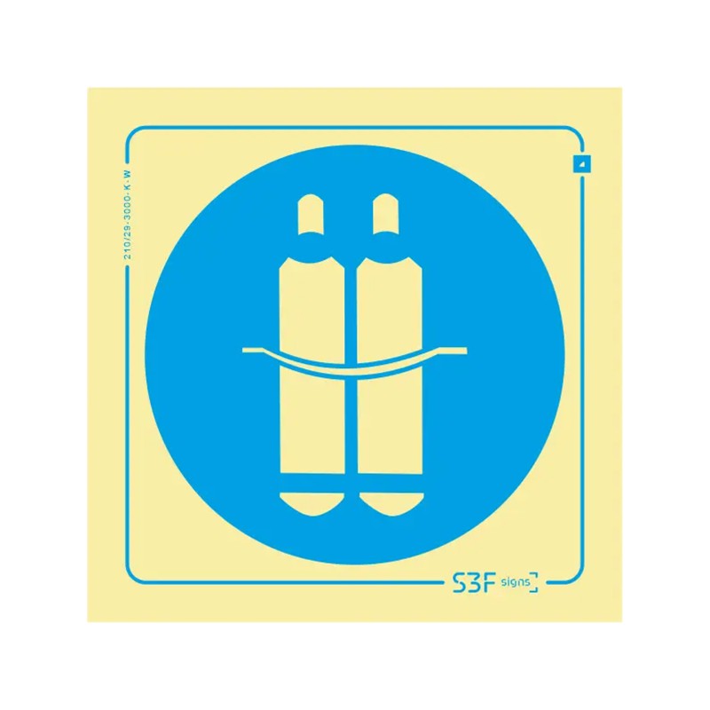 Sinal Obrigação - Manter Garrafas Presas (PVC Fotoluminescente)
